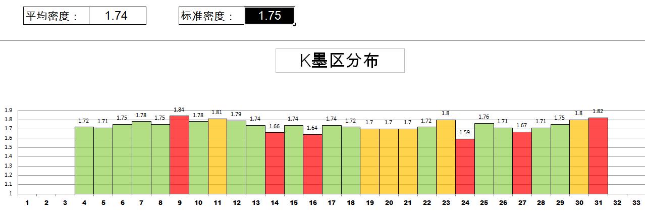 以上为KCMY的墨区信息图,可以看出初始墨区信息不够均一,而且能够看出具体到每个墨区信息的密度高低,通过图片显示,告知机长进行具体调整。