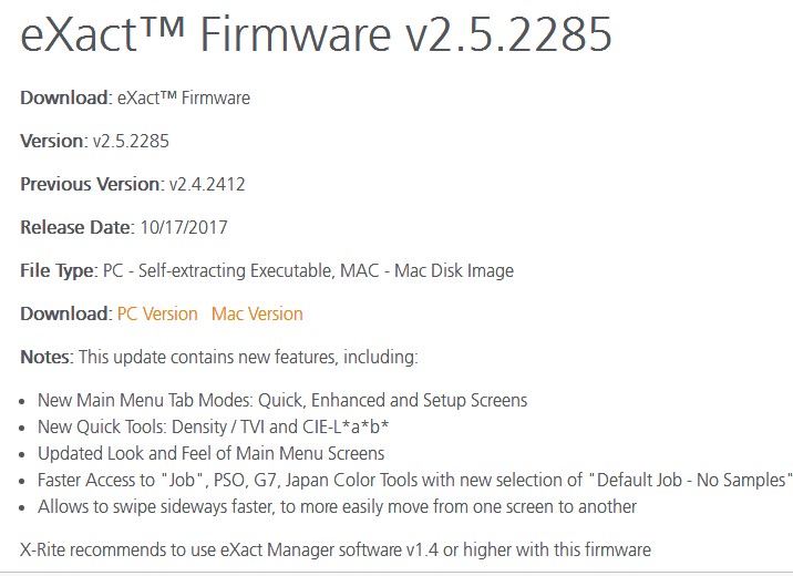 培训过很多用户,很多客户反馈exact使用过程中很多菜单隐藏的较深,不好找,还有一些工作模板工具不好用,过程有些繁琐,这不,爱色丽厂家听取了我们用户的声音,发布了新的固件版本 Firmware v2.5.2285。