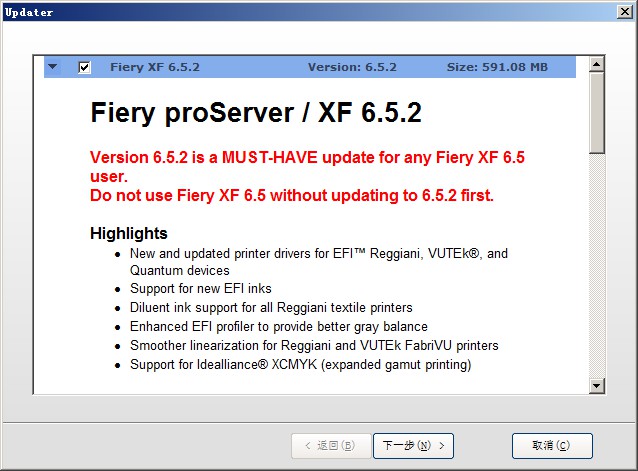 如果您有EFI6.5软件,很有可能会遇到很多BUG,比如做打印机ICC的时候,打印色表后不会出现测量界面,强烈建议做下升级,而官方的措辞也比较严厉,说明升级的必要性: